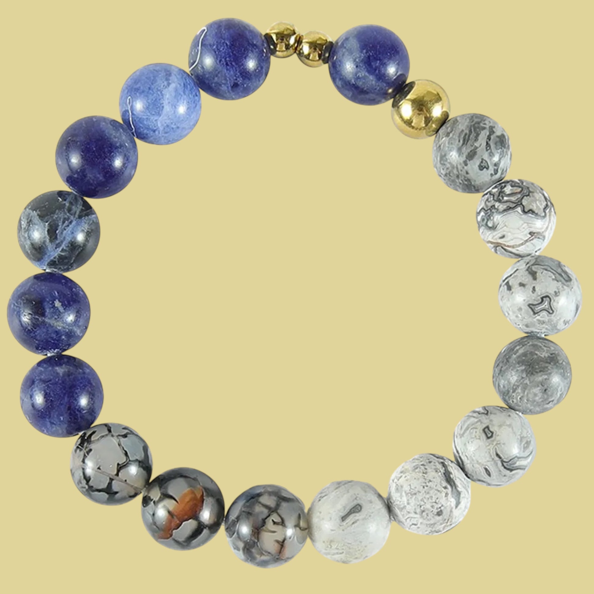Kreatives DIY-Set zur Herstellung eines stilvollen Armbands aus echten Natursteinen. Die harmonische Kombination aus verschiedenen Steinarten und Farben macht jedes Armband zu einem individuellen Schmuckstück – ideal zum Selbermachen oder Verschenken.
