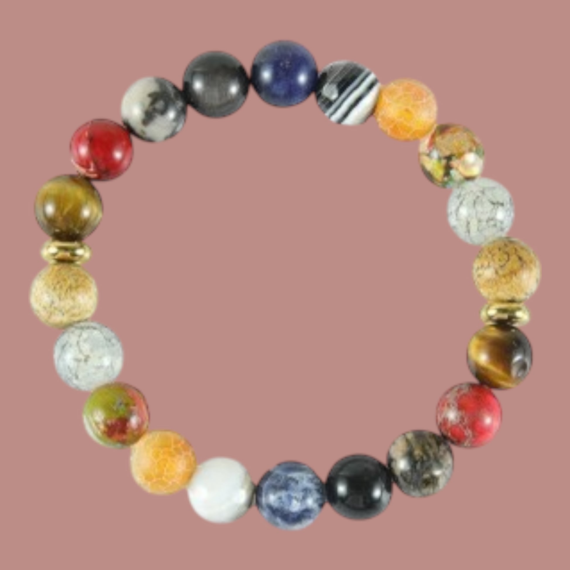 DIY‑Set zur Herstellung eines Armbands aus Natursteinen mit vielfältigen Farben und Strukturen – ideal für individuelles Schmuckdesign.