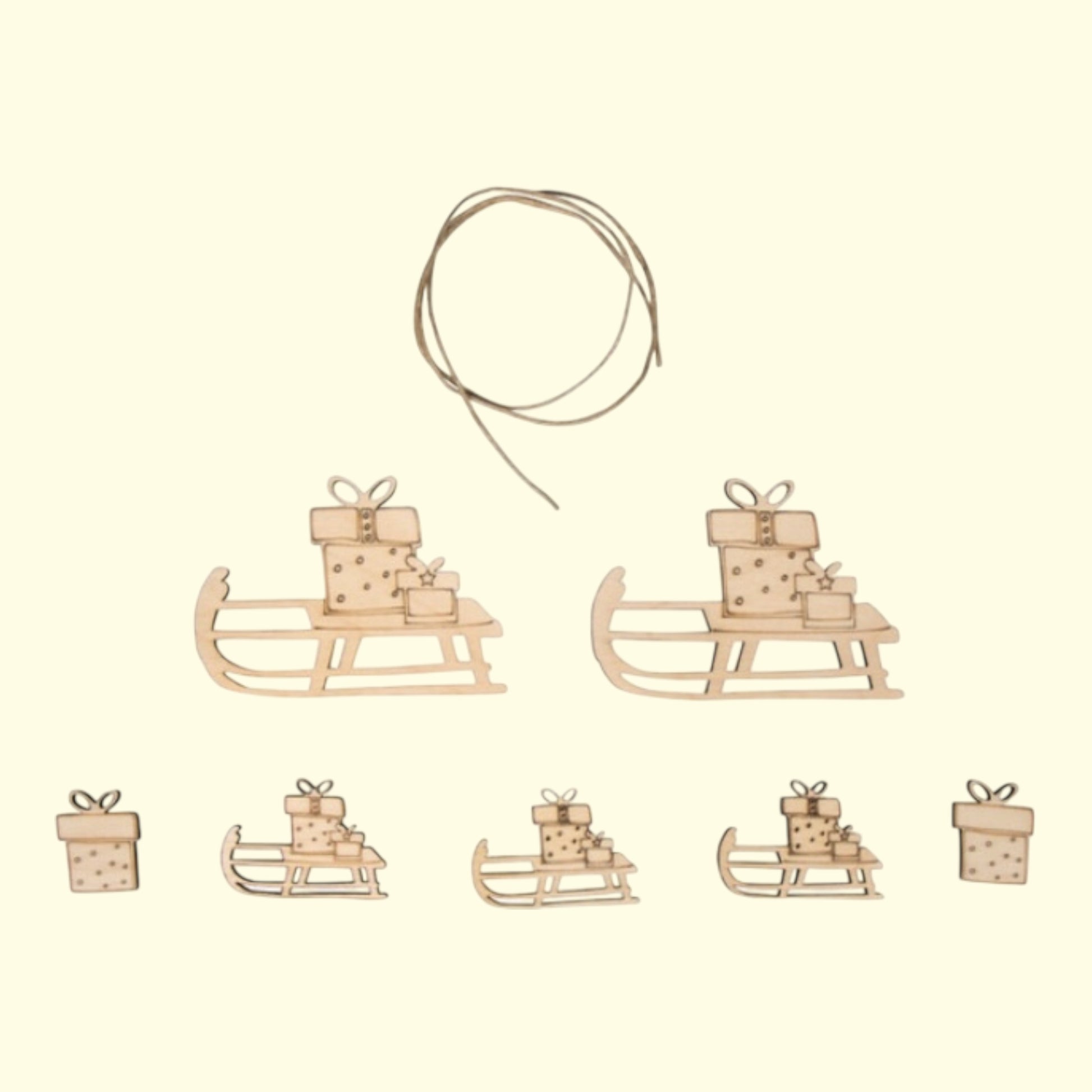 Dekorative Schlitten aus FSC-zertifiziertem Holz – perfekt für winterliche Bastelideen, Weihnachtsdekoration oder Geschenkverzierungen. Die naturbelassene Holzoptik verleiht jedem Projekt einen rustikalen, festlichen Charme. Inklusive 0,5 m Kordel zum Aufhängen oder Verzieren.