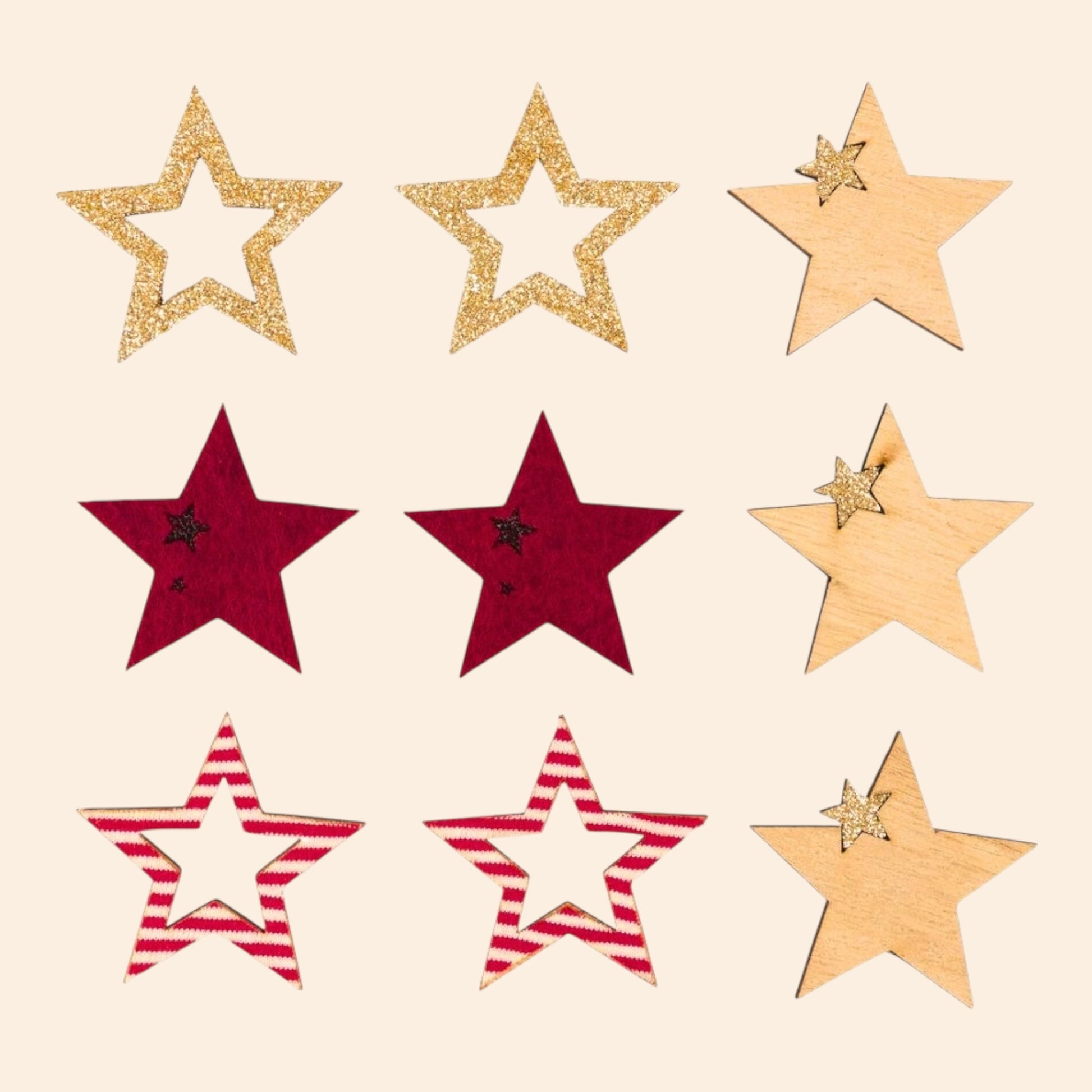 Diese charmanten Streuteile von Rayher in Sternform bestehen aus einer Kombination von Holz und Filz und bringen weihnachtlichen Glanz in jedes Bastelprojekt. Ideal für Dekorationen, Karten, Geschenkverpackungen oder Tischarrangements – für eine gemütliche, festliche Atmosphäre.