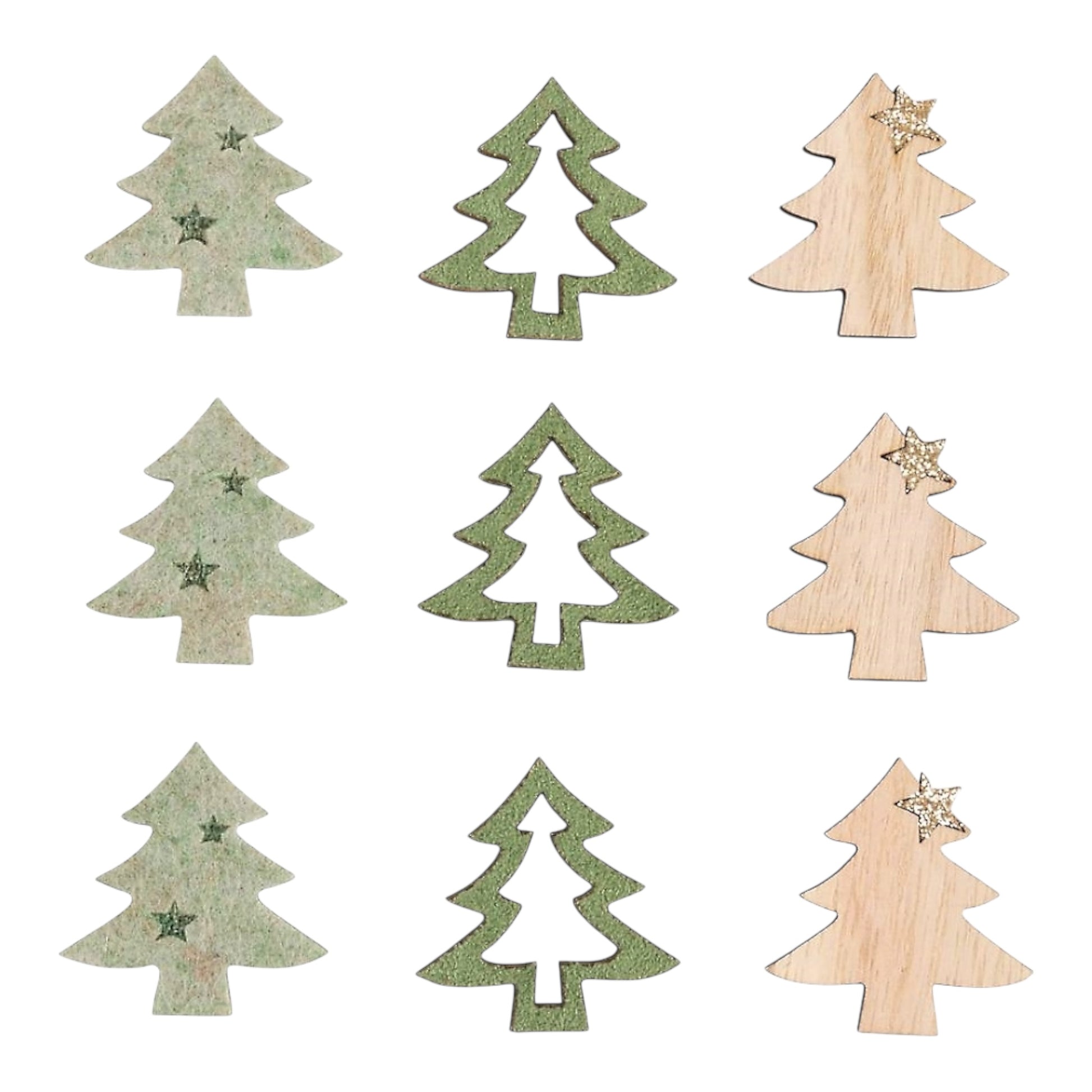 Diese liebevoll gestalteten Streuteile von Rayher in Weihnachtsbaumform bestehen aus einer Kombination von Holz und Filz und sind perfekt für festliche Bastelprojekte und Dekorationen. Sie eignen sich ideal zum Verzieren von Karten, Geschenken, Adventskränzen oder Tischdekorationen.