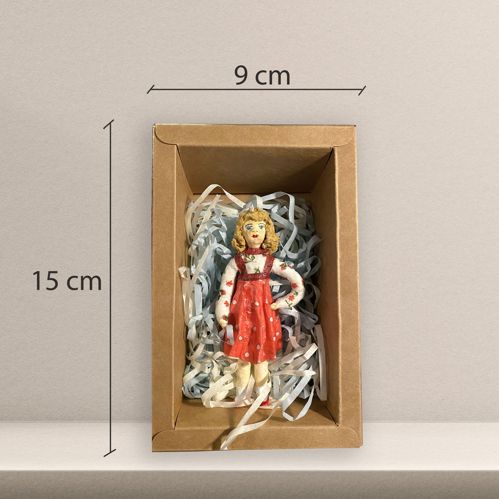 Weihnachtspuppe Frau mit rot punktierter Schürze