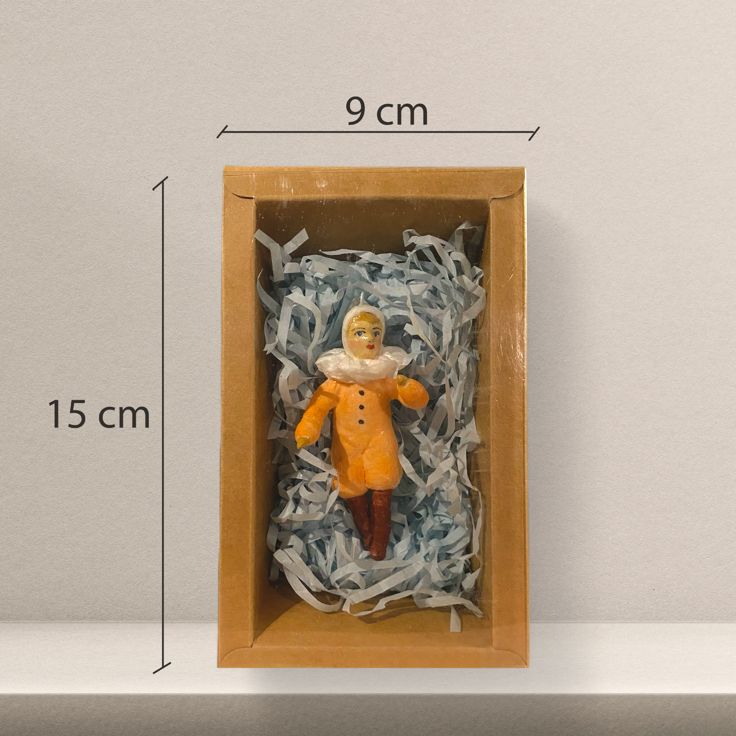 Material der Figur: Watte, Papier, Papiermaché, Farben