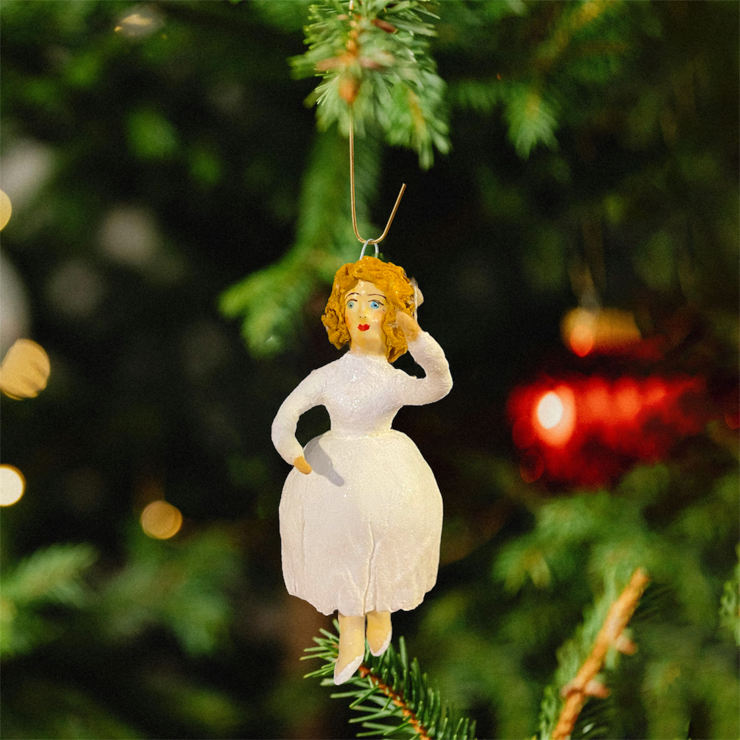 Seltene handgefertigte Figur aus gesponnener Baumwolle. Die Frau im weissen Kleid wurde kunstvoll um einen Drahtkern geformt und bemalt – ein charmantes Stück Weihnachtsgeschichte und ein begehrtes Sammlerobjekt. Jede Figur ist ein Unikat und ensteht in nur eine Auflage. Jede Figur ist ein Unikat und ensteht in nur eine Auflage.