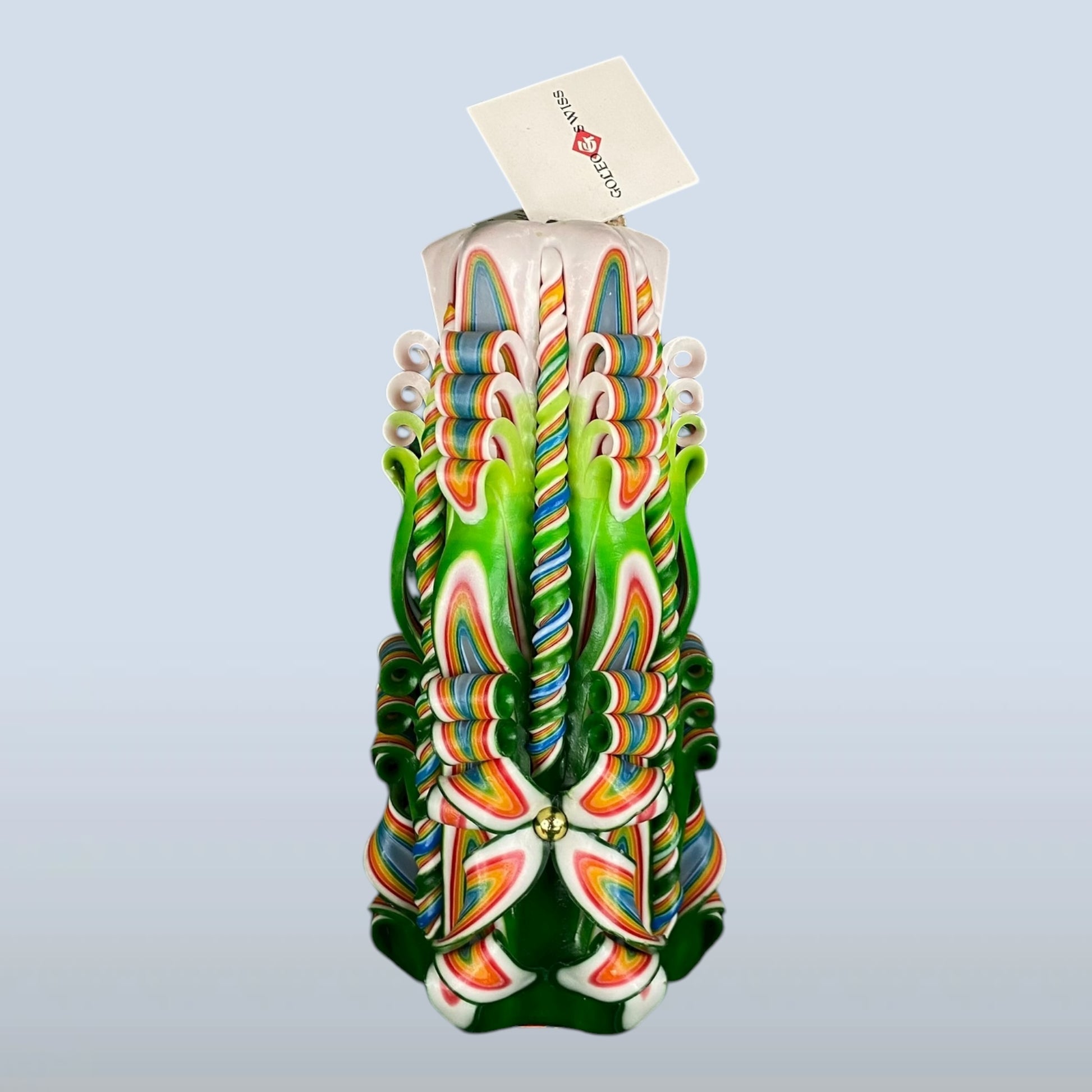 Jede Goleo Kerze ist ein einzigartiges Kunstwerk, das in liebevoller Handarbeit in der Schweiz gefertigt wird. Mit feinen Schnitten und harmonischer Farbkomposition entsteht aus hochwertigem Paraffin eine kunstvolle, dekorative Kerze, die nicht nur Licht spendet, sondern auch Emotionen weckt.