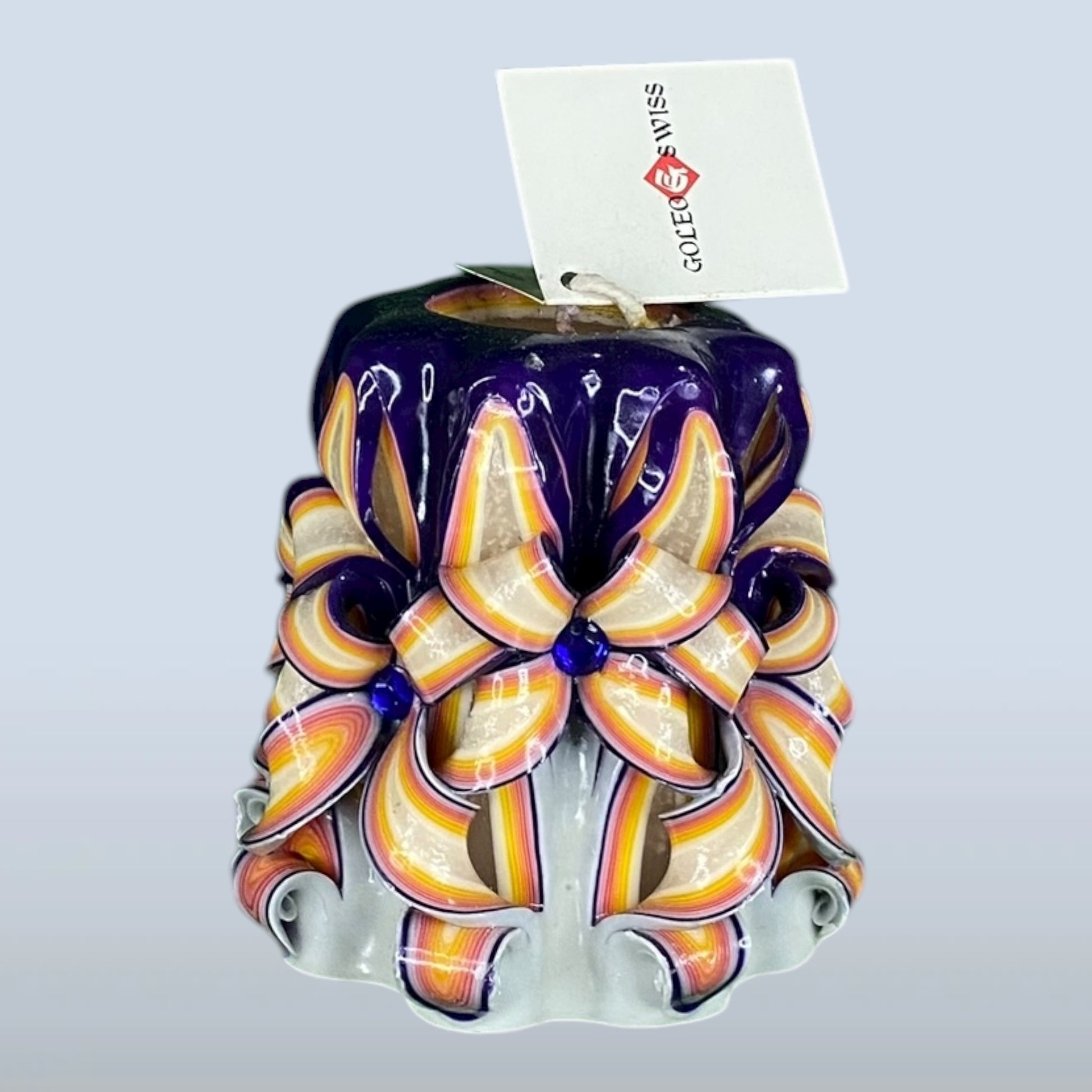 Die Goleo LED-Kerze vereint kunstvolle Handarbeit mit moderner Lichttechnik. Jede Kerze wird in liebevoller Handarbeit geschnitzt und gestaltet – Schicht für Schicht entsteht ein einzigartiges Farbspiel, das auch im unbeleuchteten Zustand begeistert.