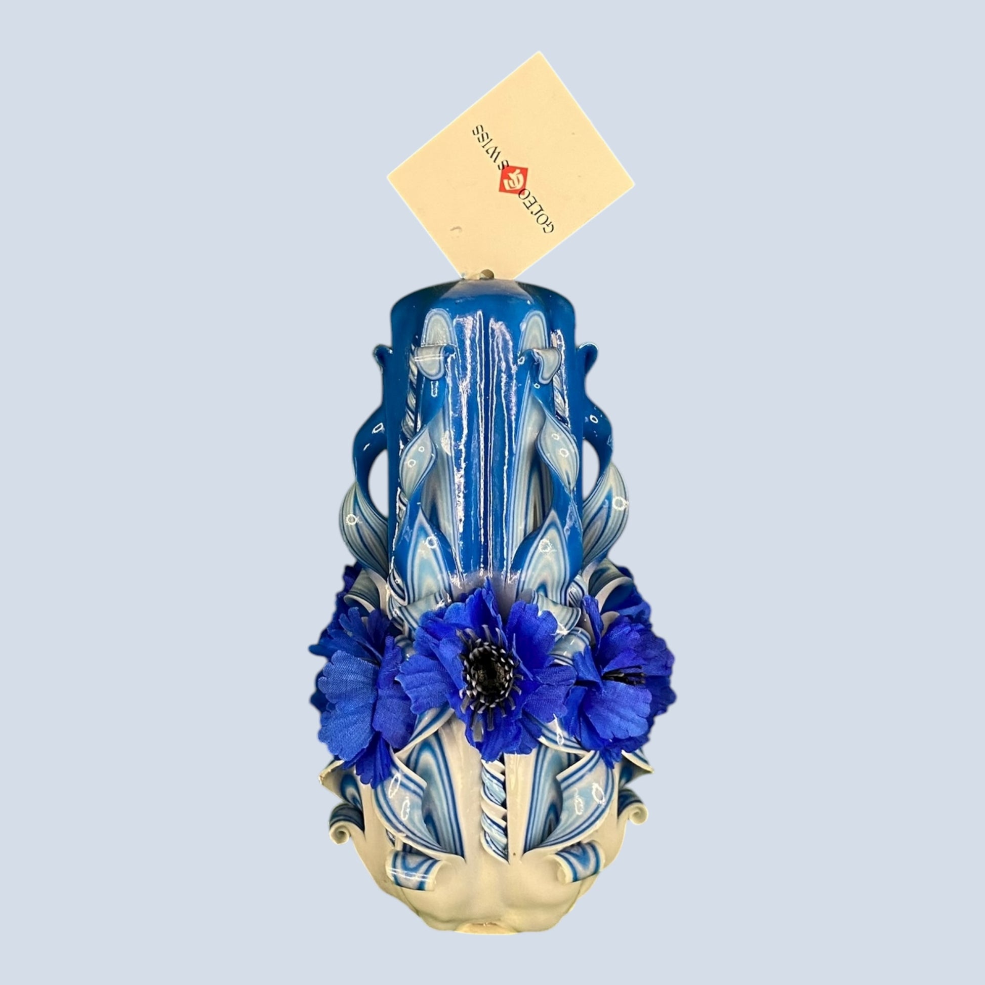 Diese kunstvoll geschnitzte Kerze wird von Hand gefertigt – mit einem scharfen Messer schneidet der Kerzenkünstler feine Muster in das warme Wachs. So entsteht aus jedem Stück ein Unikat voller Charme, Präzision und Kreativität. Diese besondere Technik macht jede Kerze zu einem kleinen Kunstwerk.