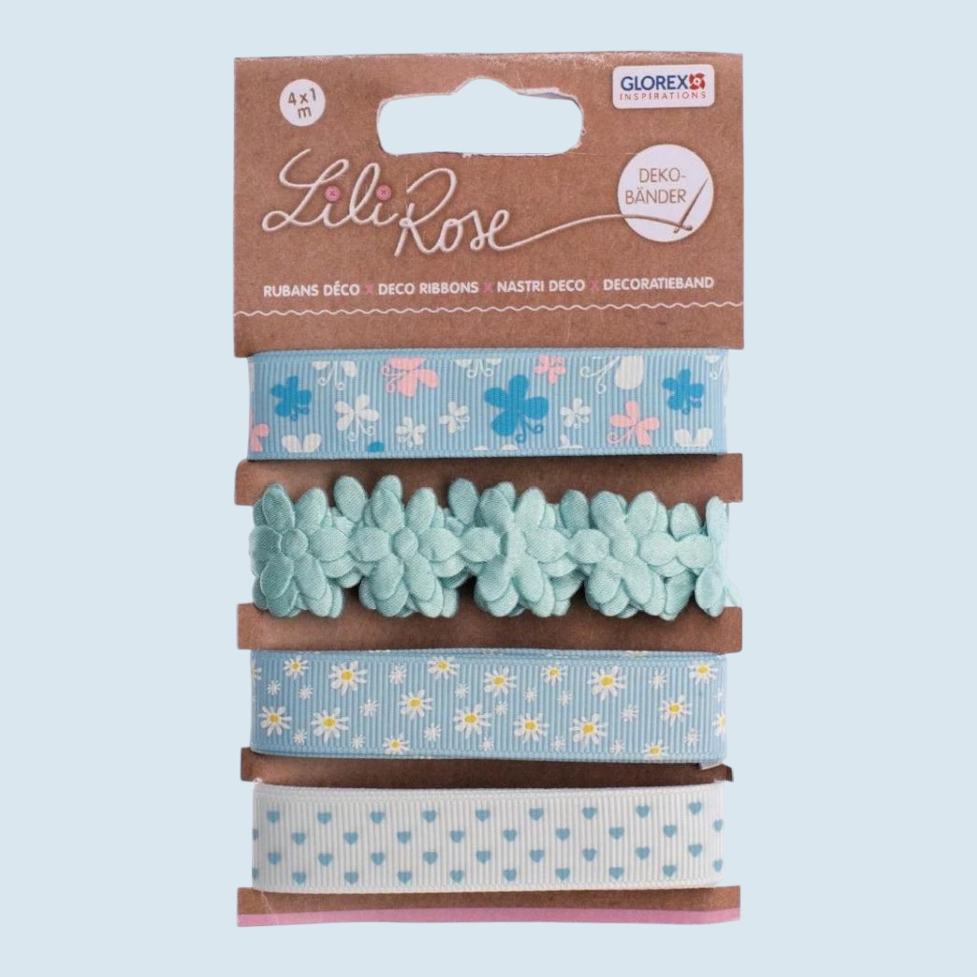 Glorex Deko-Bänder auf Karte – 5x100 cm, Blau-Töne