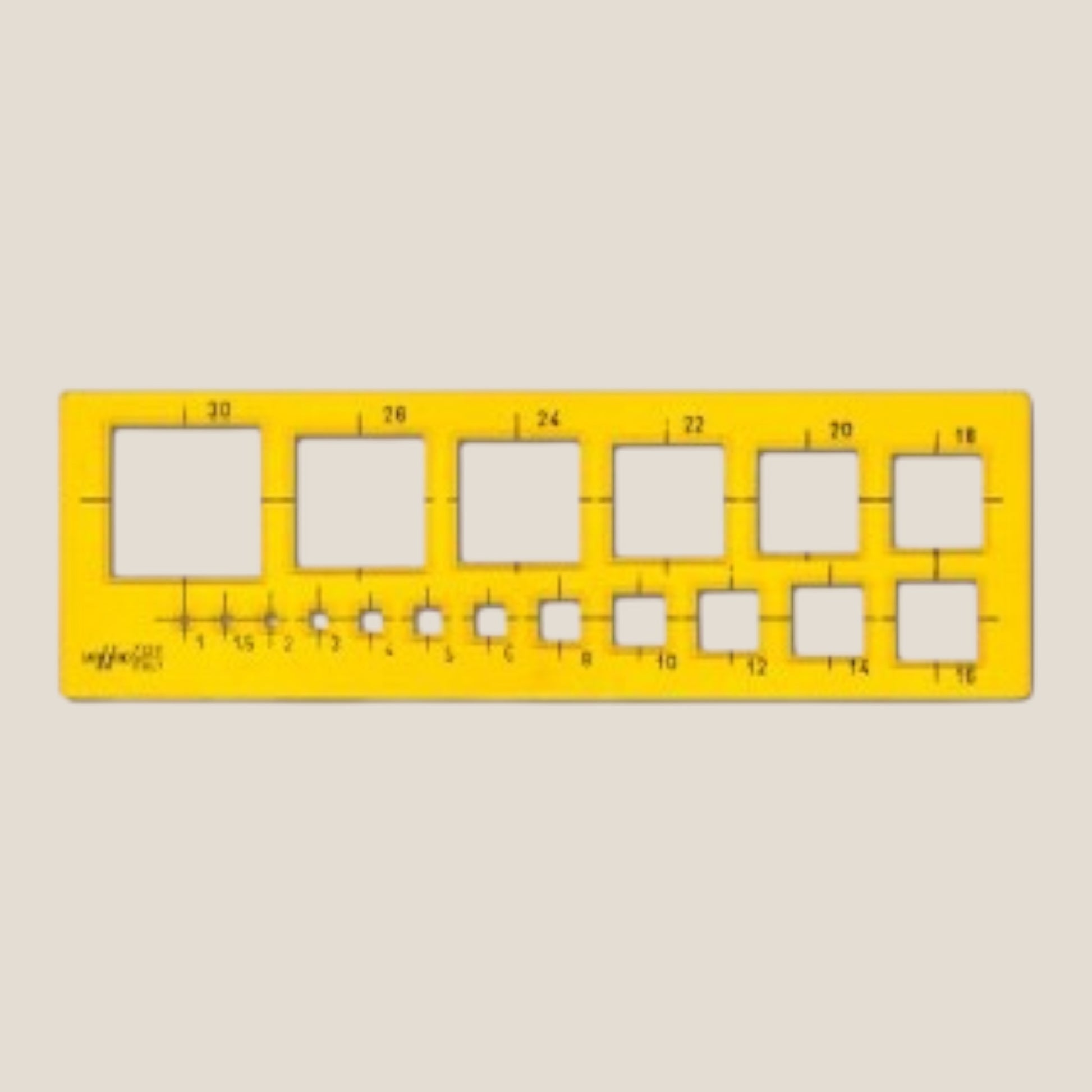 ARDA Schablone Quadrate 1–30 mm, Gelb-transparent