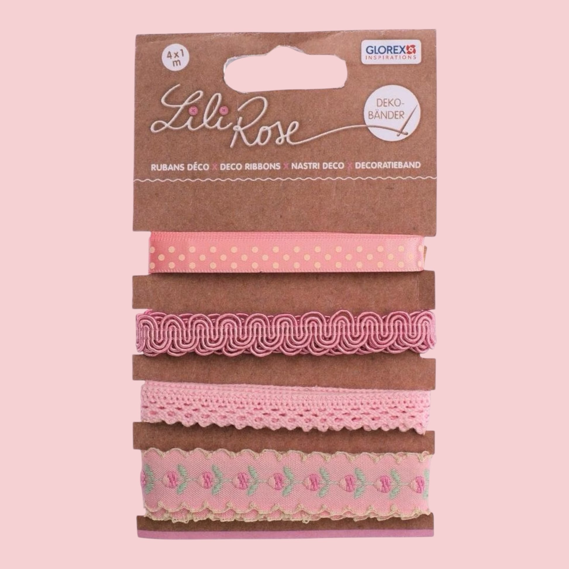 Dekoratives Band-Set in zarten und kräftigen Pink-Tönen. Ideal für Bastelarbeiten, Scrapbooking, Geschenkverpackungen und kreative Dekorationen. Unterschiedliche Designs und Strukturen ermöglichen eine Vielzahl an individuellen Gestaltungsmöglichkeiten.