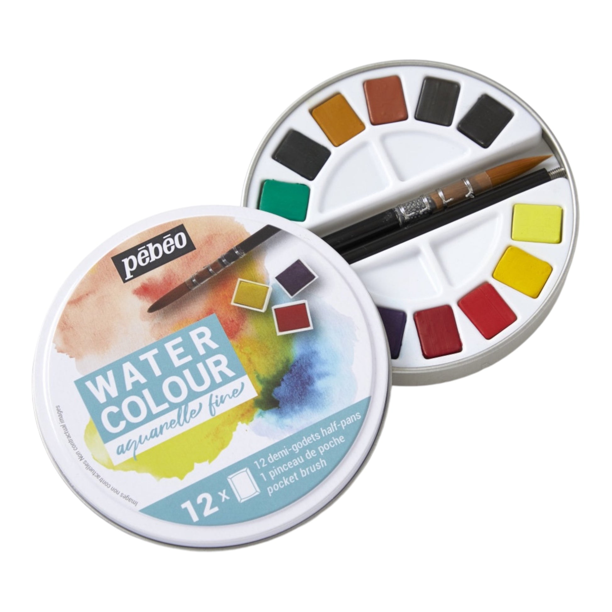 Das Aquarell-Set Fine Watercolour von Pébéo wurde in Zusammenarbeit mit Künstlern entwickelt und erfüllt die Ansprüche von Hobbykünstlern, Studierenden und Anfängern. Dank des kompakten Designs mit halben Näpfchen und praktischen Zubehörteilen ist dieses Set perfekt für das Malen unterwegs.