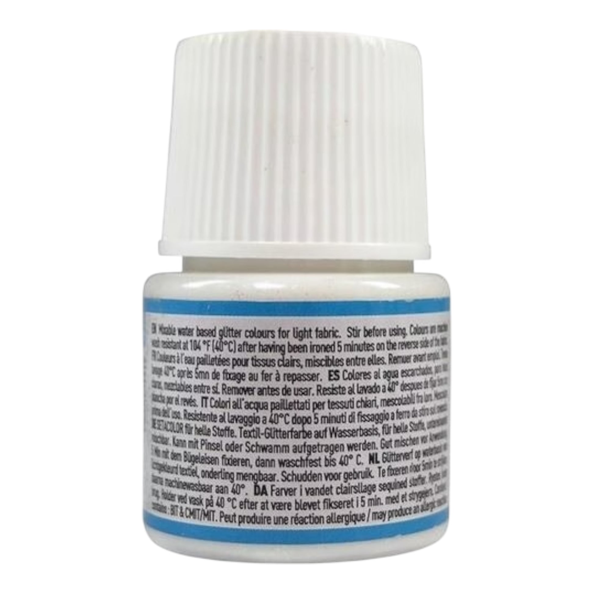 Hochwertige Textilfarbe mit funkelndem Glitter-Effekt für helle Stoffe. Die Farbe sorgt für ein transparentes, strahlendes Finish und verleiht Textilien eine besondere Note.