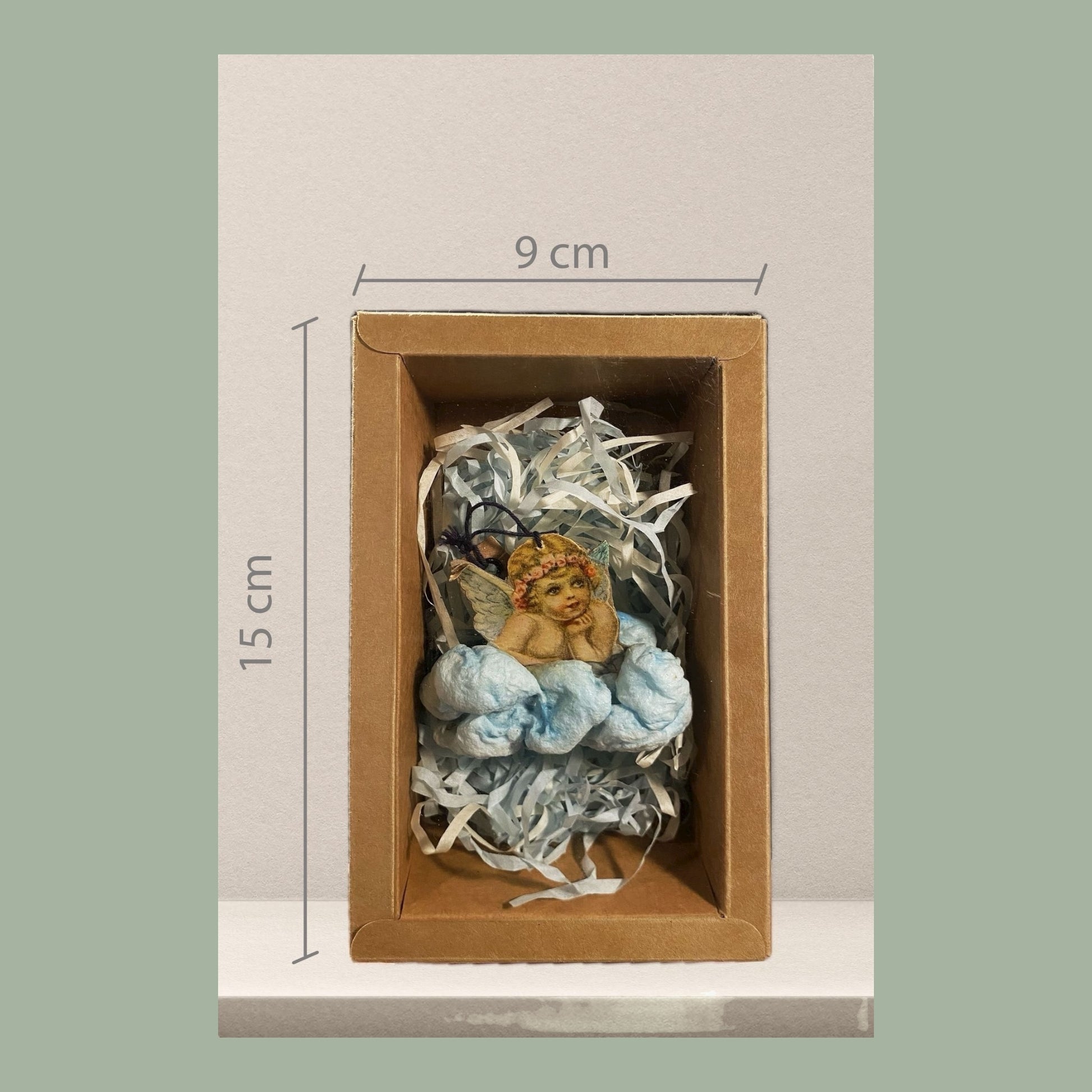 Handgefertigter Weihnachtsschmuck aus Watte im nostalgischen Stil. Das zarte Engelchen, das verträumt auf einer weichen Wolke ruht, wird zu einem liebevollen Schmuckstück für Ihren Weihnachtsbaum und bringt festliche Wärme in Ihr Zuhause. Jedes Detail wird von Hand gefertigt – daher ist jede Figur ein Unikat und trägt ein Stück der Seele des Künstlers in sich.